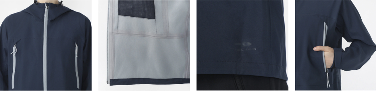 - • 프런트·포켓 지퍼에는 방수성이 뛰어난 실드 지퍼 채용